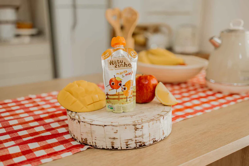 - Manga e Maçã – A partir de 9 meses de vida, a combinação de frutas ajuda a ampliar o repertório alimentar com mais variedade e sabor.