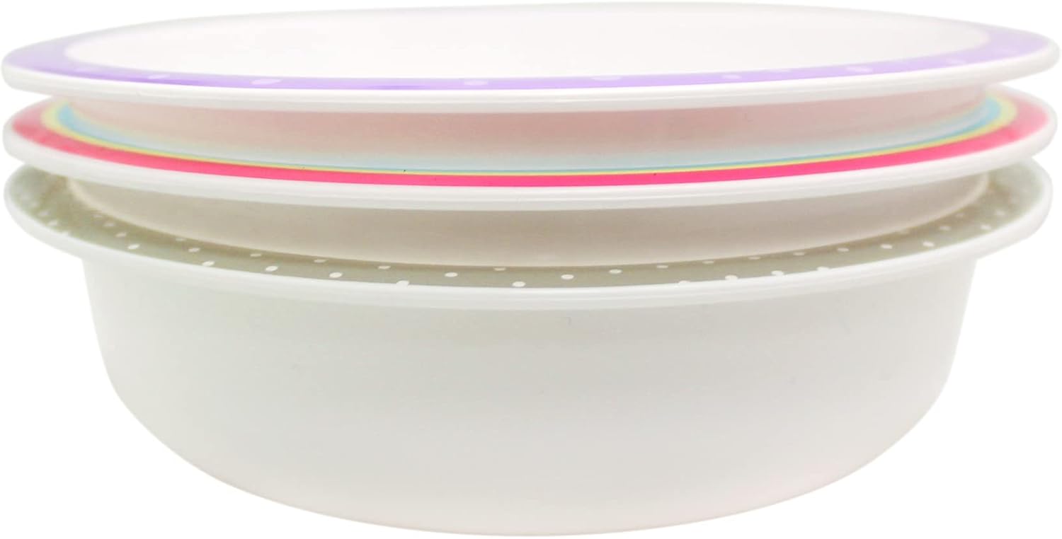 Um kit com três tigelas leves com cores vivas, ideal para tornar a hora das refeições dos seus pequenos ainda mais divertida.