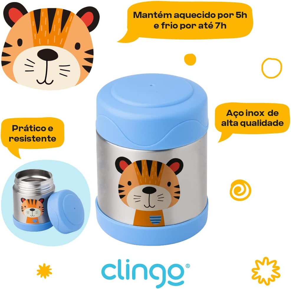 O pote térmico Tigre da Clingo, é ideal para a rotina corrida que levamos no dia-a-dia. Ele foi desenvolvido com aço inoxidável de alta qualidade para garantir que seu alimento fique aquecido por até 5 horas e frio por até 7 horas!