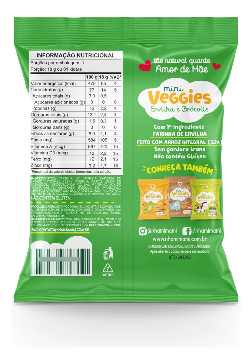 O Snack Infantil com Ervilha e Brócolis Nhami Mami 18g é uma opção saudável e equilibrada para os lanches dos bebês. Produzido com ingredientes naturais. Sua textura leve e crocante estimula a mastigação e o desenvolvimento motor. Prático para levar na bolsa, é perfeito para qualquer momento do dia. Nutrição e sabor com o cuidado…